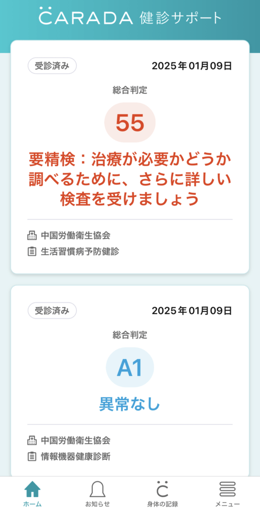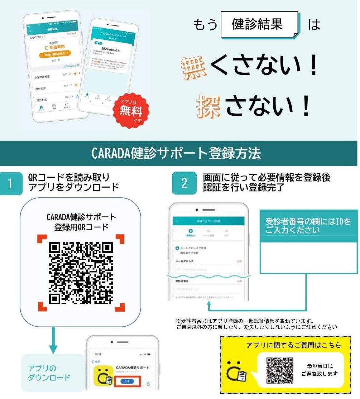 当協会では、事前にご契約いただいた事業場の皆さまを対象に、健診結果をスマートフォンで確認できる「CARADA健診サポート」アプリの提供を開始しました。
