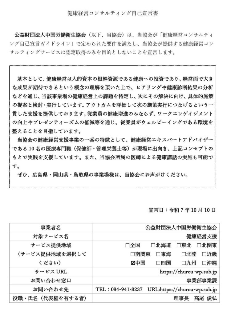 健康経営コンサルティング自己宣言書