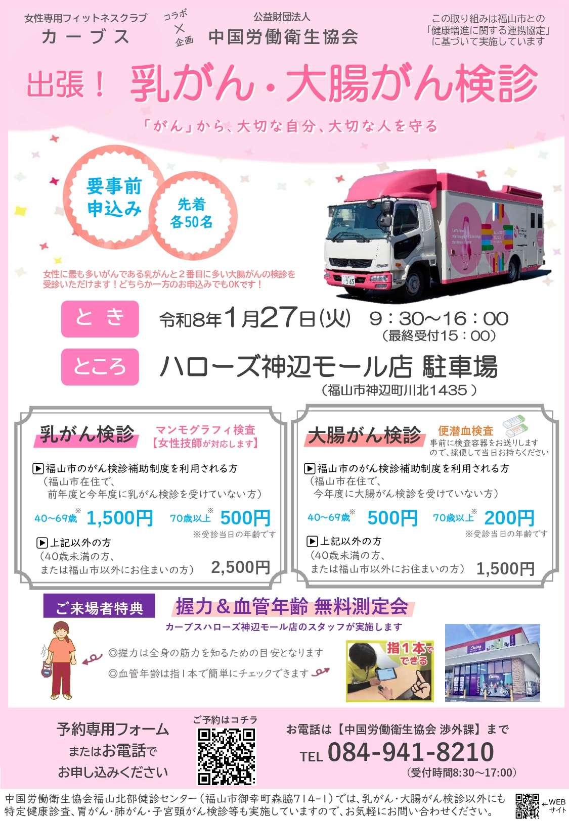 【出張!乳がん・大腸がん検診inハローズ神辺モール店】を開催します