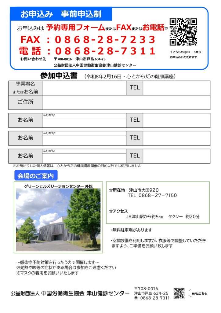 「心とからだの健康講座」を開催します