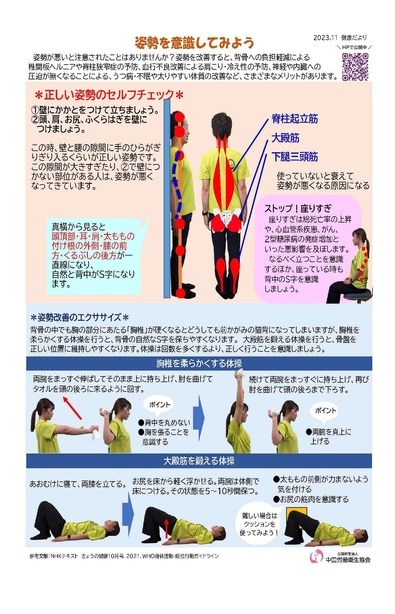 公益財団法人中国労働衛生協会が発行・掲載する文書や画像などには著作権があります。個人での閲覧や印刷などの私的利用は自由ですが、転載・引用・再配布・改変などを行う場合は、出典を明記し、内容を編集・加工した場合はその旨(改変等)を示してください。営利目的の利用はご遠慮ください。