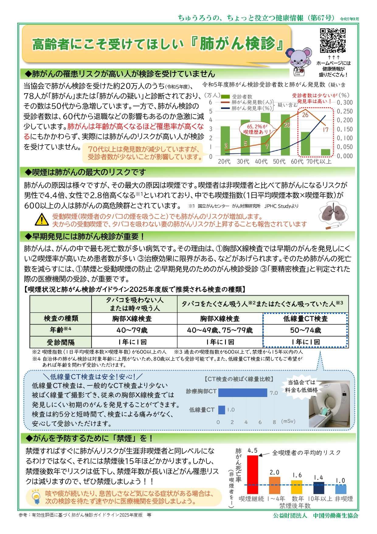 【第67号】高齢者にこそ受けてほしい『肺がん検診』