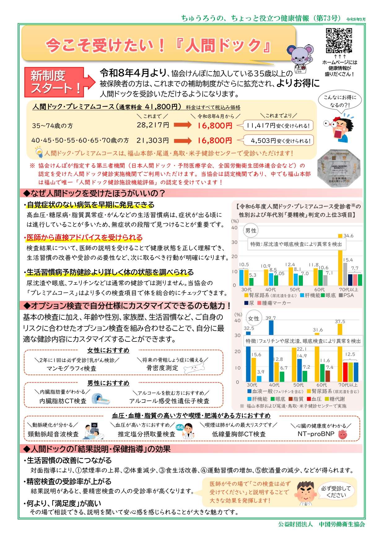 【第73号】今こそ受けたい!『人間ドック新制度スタート!』