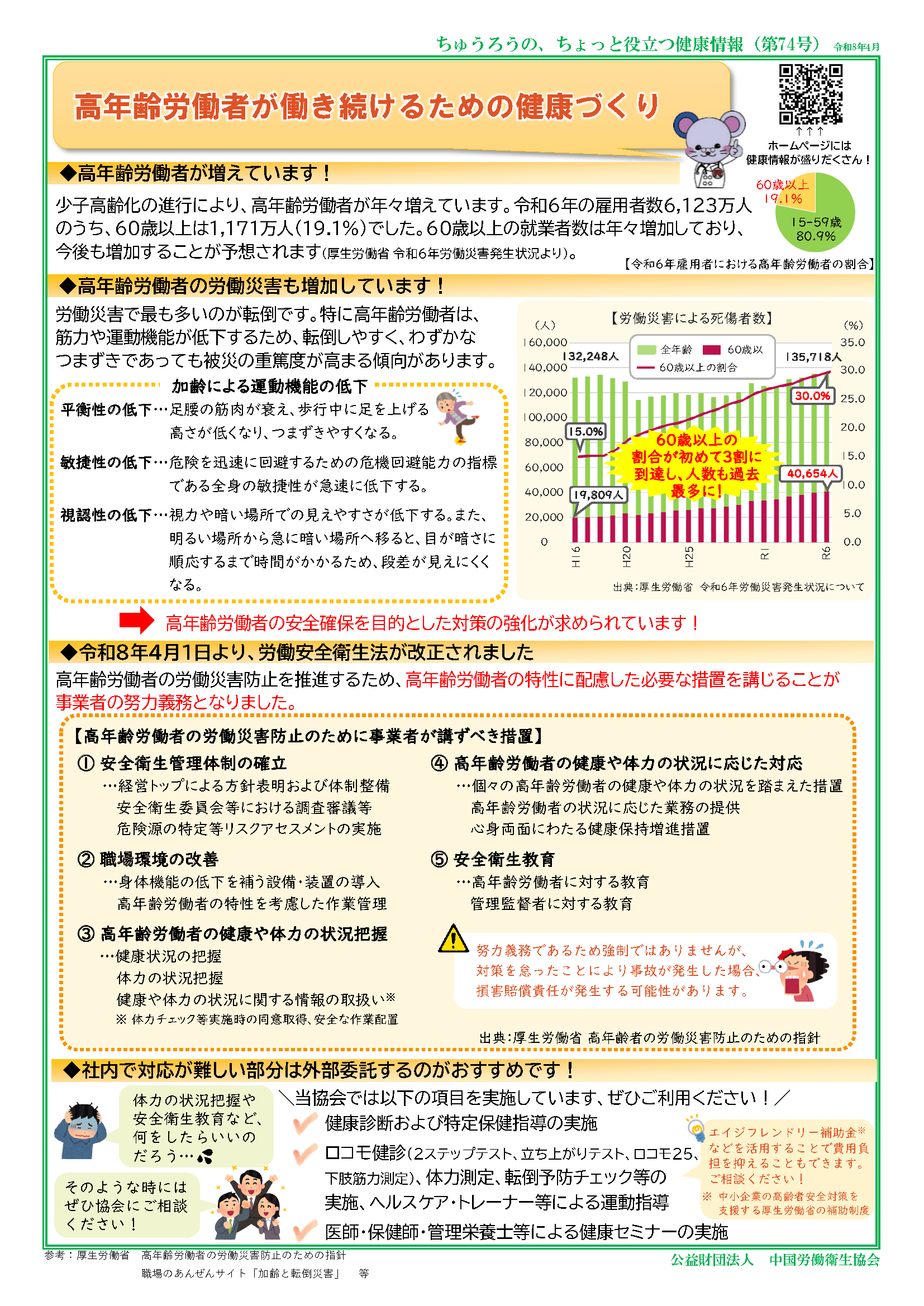 【第74号】高年齢労働者が働き続けるための健康づくり