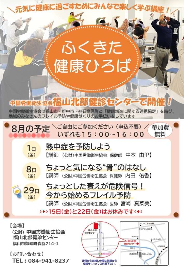 福山北部健診センター「ふくきた健康ひろば」のお知らせ(2025年8月分)