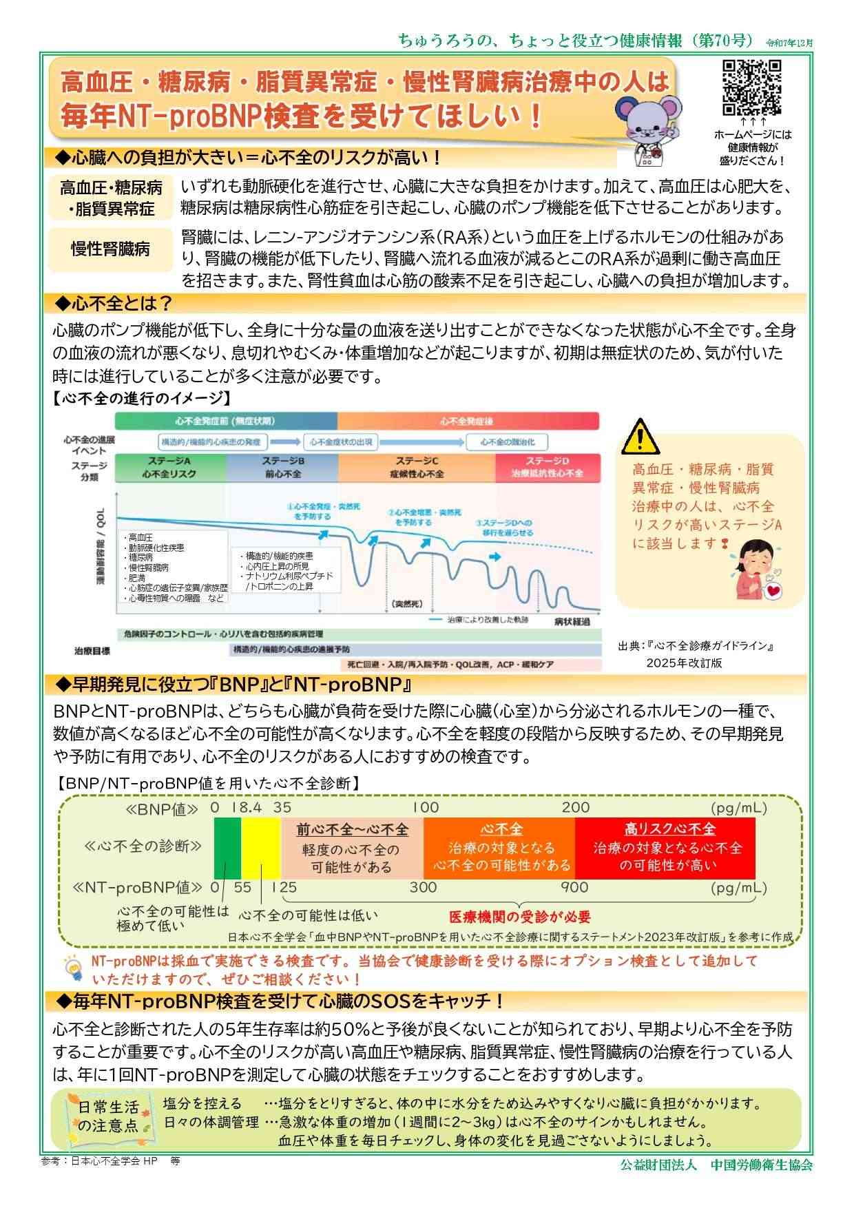 中国労働衛生協会では、地域の皆さまの健康づくりを応援するために「健康だより」を発行しています。